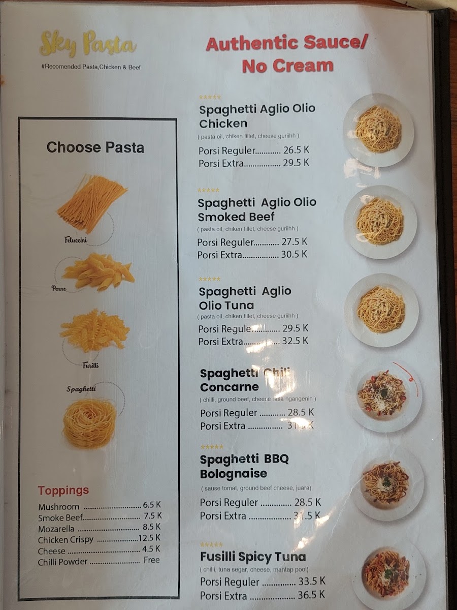Whether you're a pasta aficionado or a newbie, Sky Pasta promises a fulfilling dining experience to savor. So, grab your family and friends, and set off to discover the flavors of Bekasi!